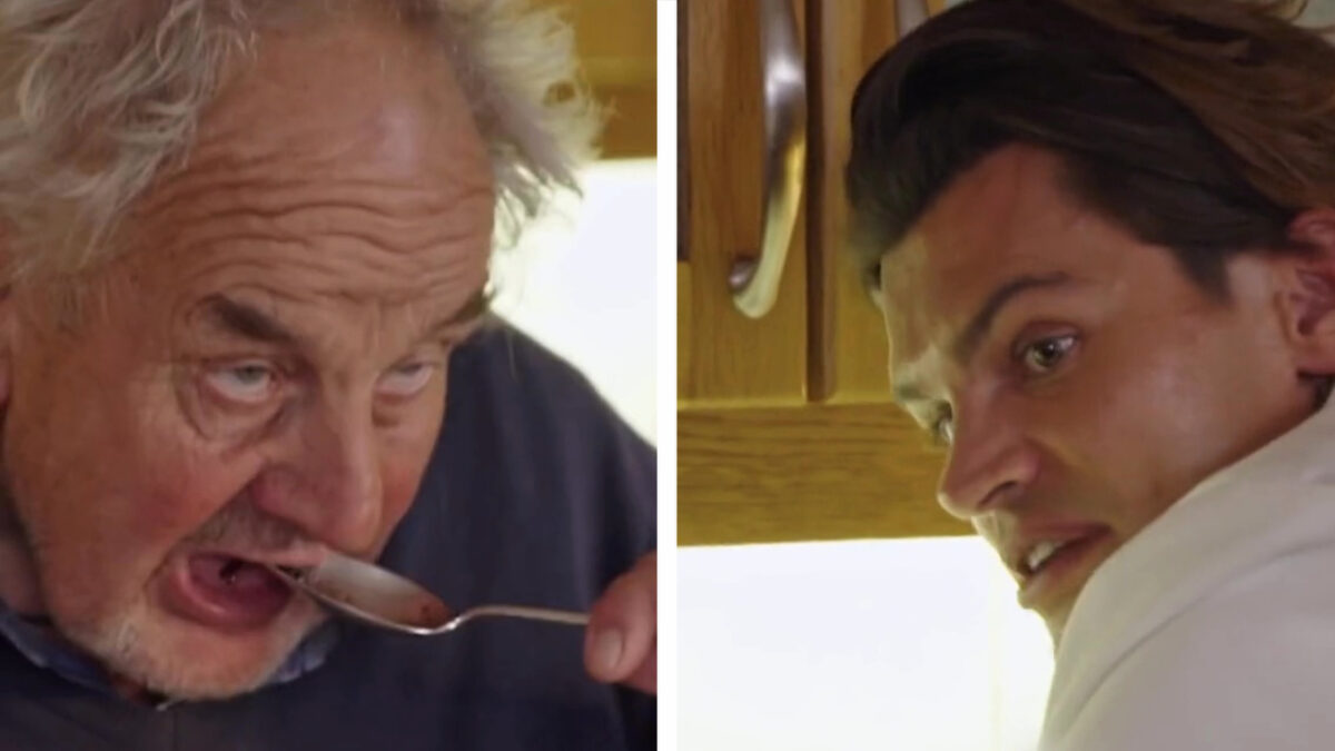 Boer neemt een hap uit extreem ranzige pan en Koen Kardashian gaat bijna over zijn nek