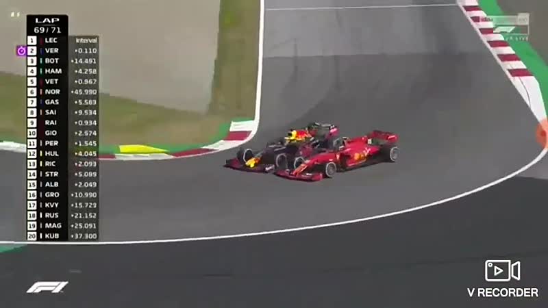De overwinning is nog even in gevaar vanwege de inhaalactie op Leclerc, waardoor er nog even door de leiding wordt gekeken, maar de prestatie is er niet minder om.