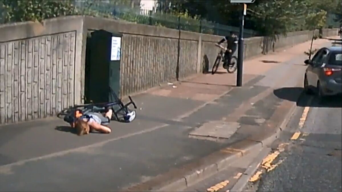 Vrouw maakt kanjerharde faceplant als ze vol in de ankers gaat tijdens het fietsen Verkeer