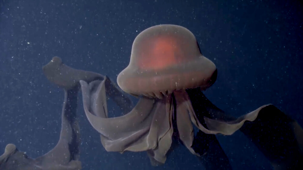 Gigantische zeldzame 'schijfkwal' op één kilometer diepte op video vastgelegd