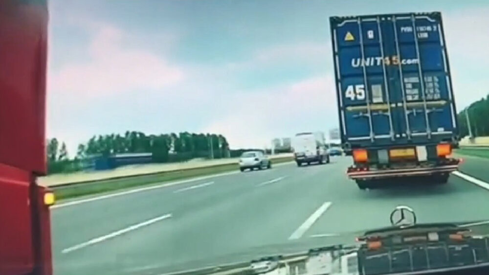 Tijdens het invoegen op de A4 gaat het niet helemaal lekker als een automobilist in de dode hoek van een vrachtwagenchauffeur komt te zitten. Er valt van beide kanten wellicht iets van te zeggen, maar zit de vrachtwagenchauffeur hier niet gewoon fout? Prima PIT-manoeuvre!