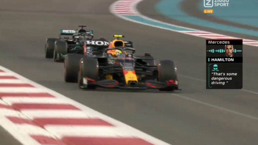 Check hier het heerlijke verdedigende werk van Sergio Pérez waarmee hij Lewis Hamilton ongeveer 7 seconden aan zijn broek 'naaide'. De reactie van Hamilton: "That's some dangerous driving man". Uiteraard.