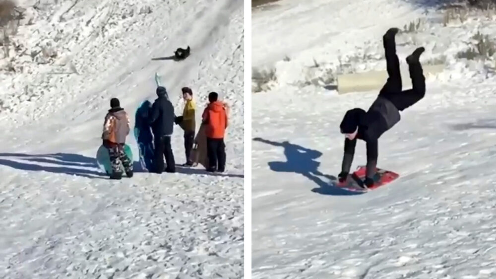 Ga met je slee van de heuvel af they said, dat wordt echt hilarisch they said 👀