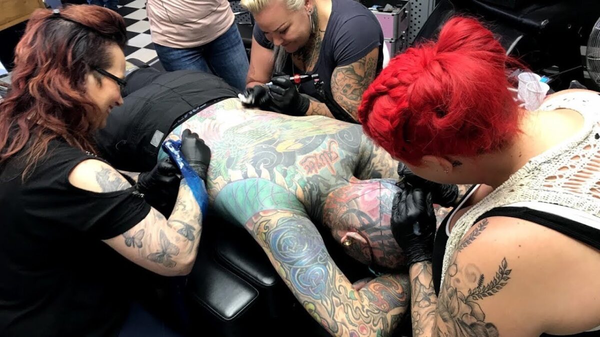 René van Assema is niet vies van een plakplaatje hier en daar en aan alle aandacht is hij ondertussen ook wel gewend. Hij heeft nog een paar gaatjes over, maar die vullen drie hele grote neger... vrouwen vandaag even op.
