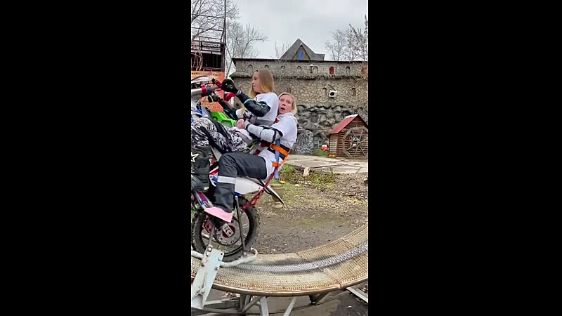 Een crossmotor op een looping vastzetten en gas geven, meer heb je niet nodig voor een lichtelijk bizarre attractie. Niet voor mietjes, want deze dame staat werkelijk doodsangsten uit.