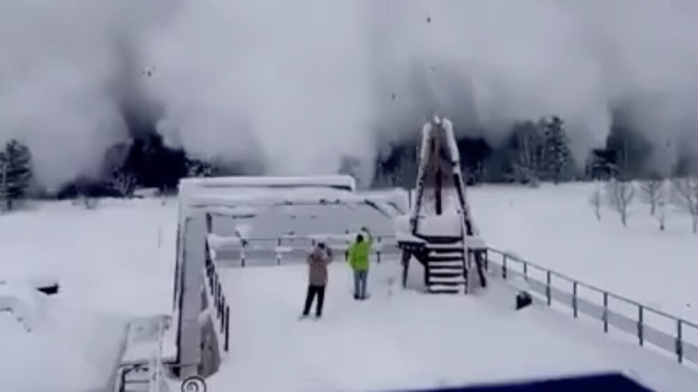 Is ook zo, waarom zou je maken dat je wegkomt als je ook kunt blijven staan om zo die lawine met je eigen telefoon te kunnen filmen?!