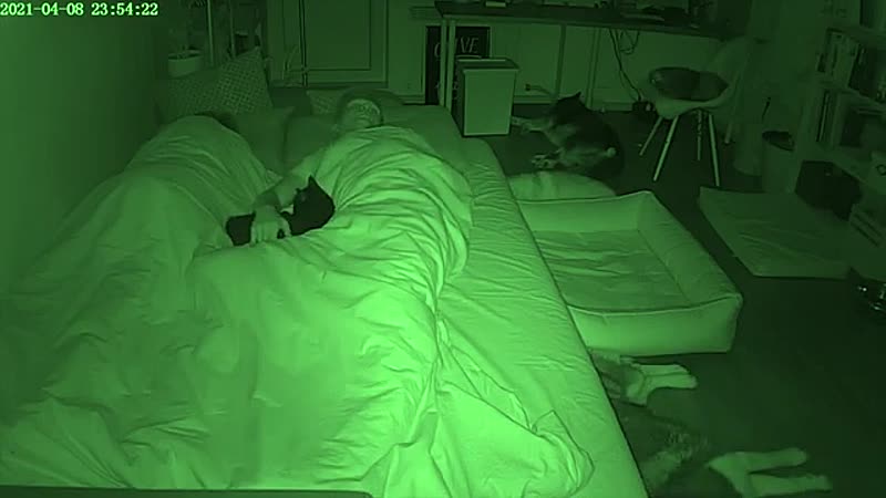 Deze dierenvriend maakt een #timelapse hoe hij met zijn huisgenoten slaapt. We tellen zo snel 3 katten en 3 husky's in een behoorlijk kleine kamer, dus het zal er vast ontzettend lekker ruiken na een nachtje ronken.