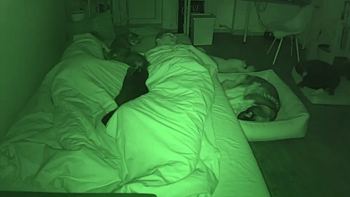 Deze dierenvriend maakt een #timelapse hoe hij met zijn huisgenoten slaapt. We tellen zo snel 3 katten en 3 husky's in een behoorlijk kleine kamer, dus het zal er vast ontzettend lekker ruiken na een nachtje ronken.