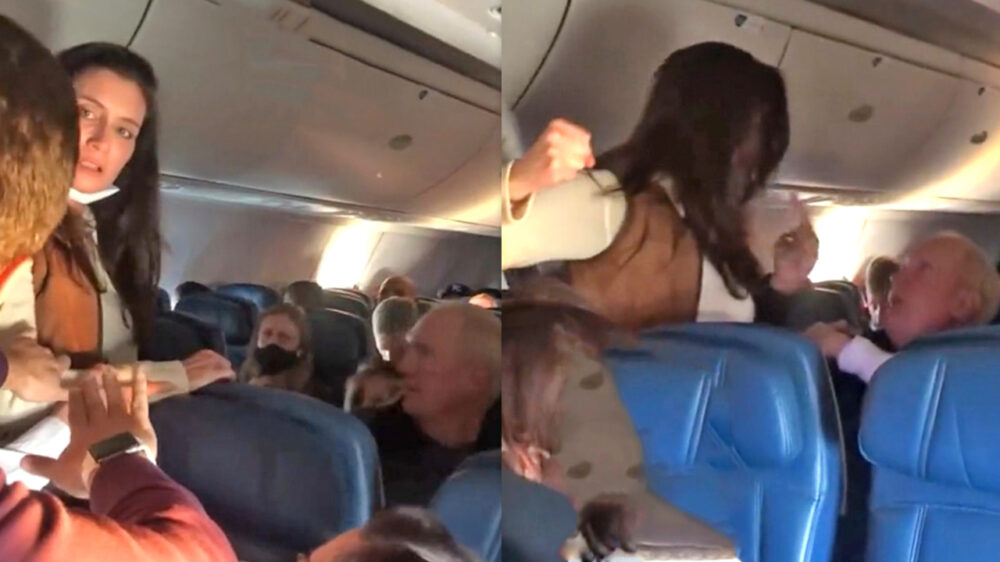 Karen slaat en bespuugt oude man tijdens vlucht omdat hij geen mondkapje draagt