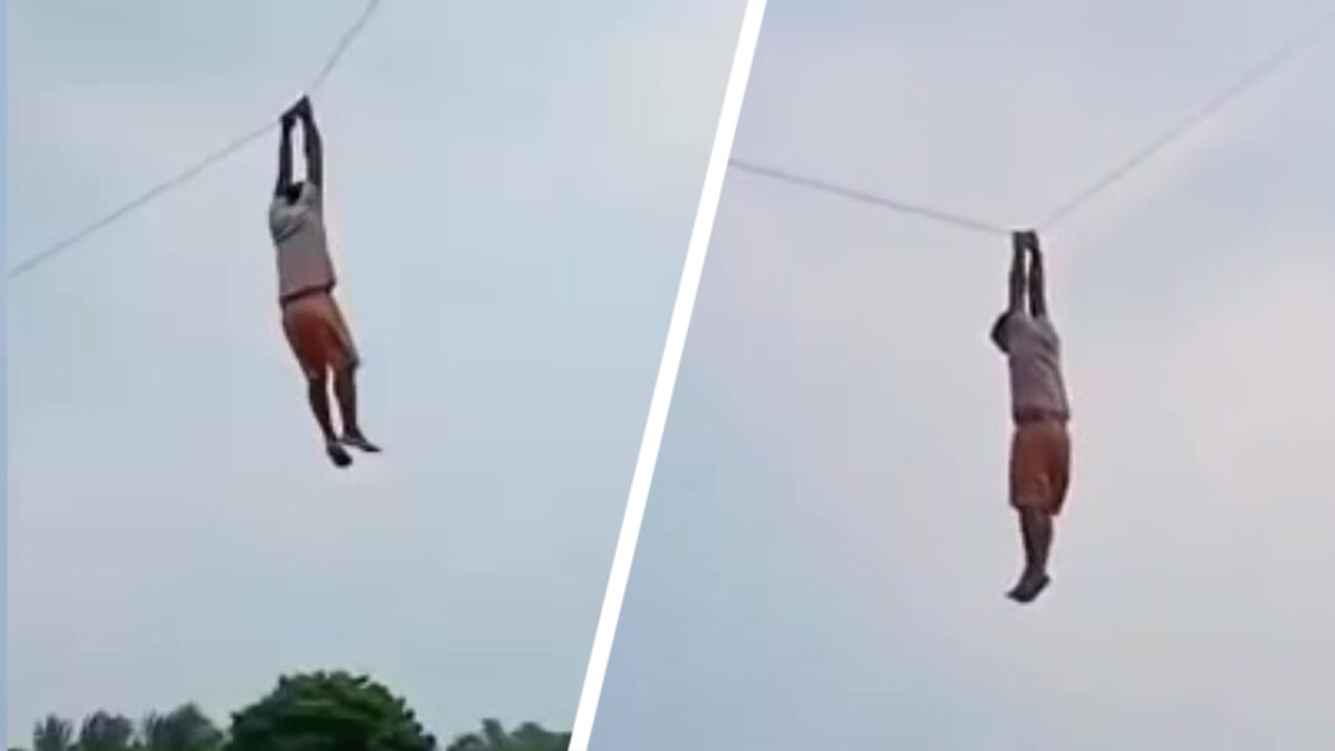 Sri Lankaans ventje wordt door vlieger zo'n 15 meter de lucht in geslingerd