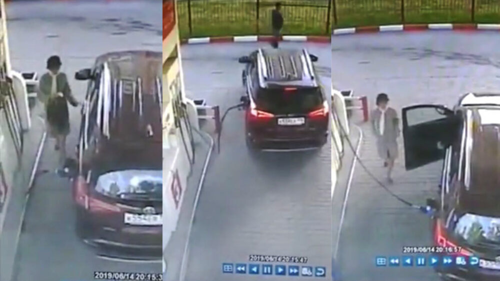 Oké, een vrouw die vergeet dat ze de slang nog in haar auto heeft hangen hebben we wel vaker gezien, maar wat dit figuur presteert is wel next level WTF-heid.