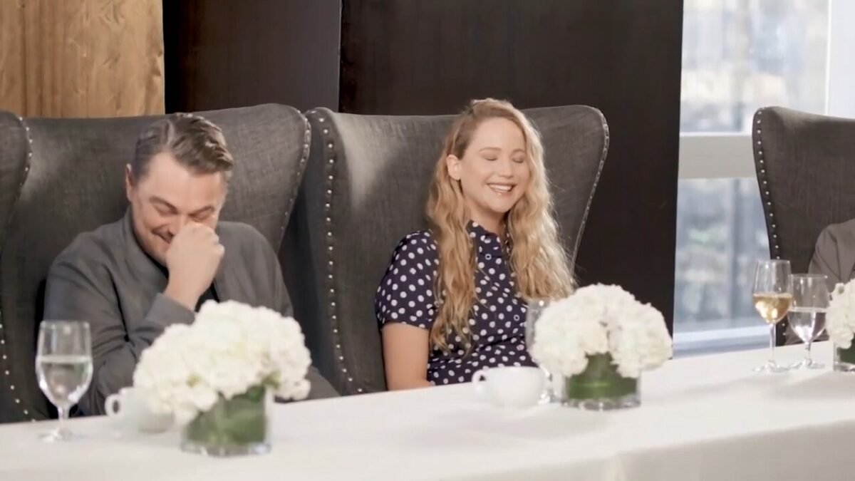 Mannen blijven mannen en dit geldt net zo hard voor megasterren als Leonardo DiCaprio en Jonah Hill. Tijdens een interview voor de promotie van hun nieuwe Netflix film 'Don't Look Up' gaat Leo stuk als Jonah sneaky zijn scheetmachine gebruikt. Verdomme, wat kinderachtig Leo.
