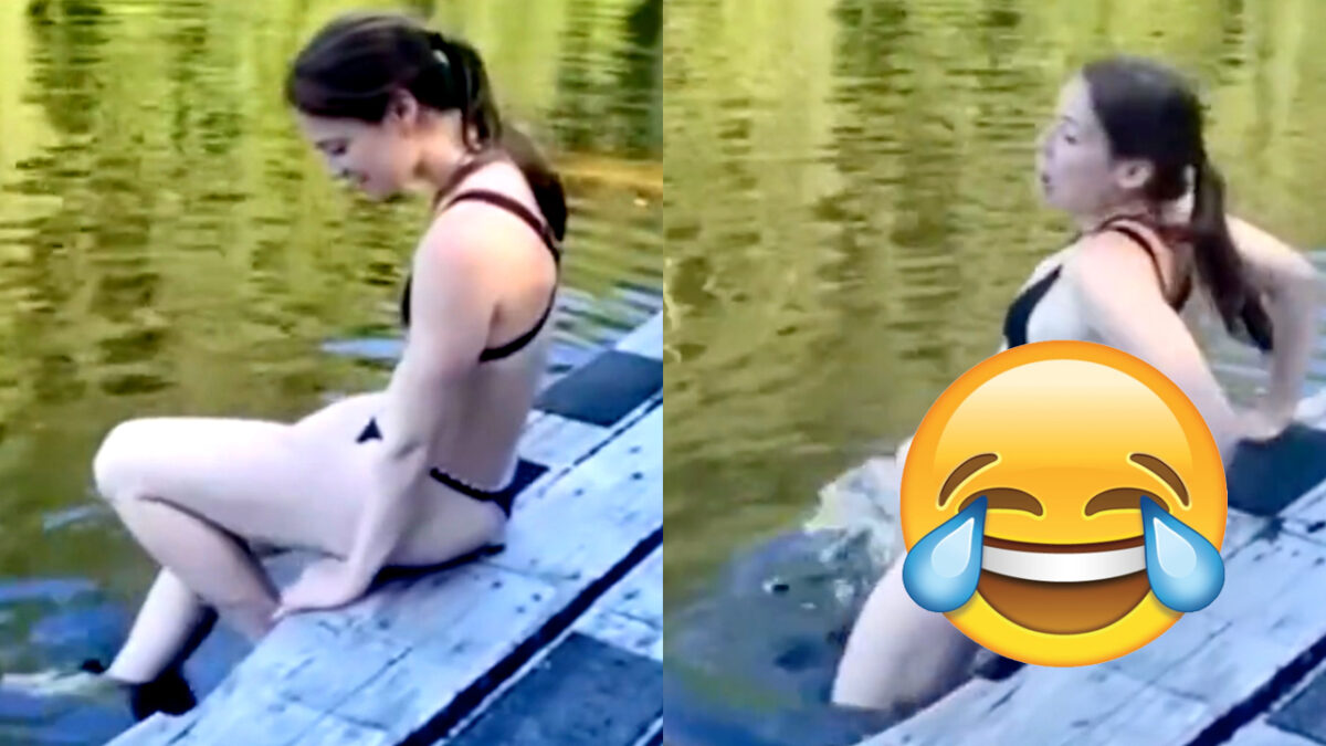 De eerste nieuwjaarsduik van 2022 was voor deze dame niet echt succesvol