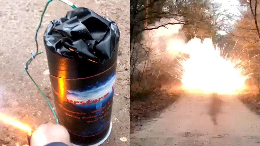 We zagen gisteravond al dat je dikke explosieven - met een paar liter brandstof erbij - beter niet in fietstunneltjes moet leggen, maar ook deze Thunderstorm van 2000 gram kun je beter niet in je achtertuin aansteken...