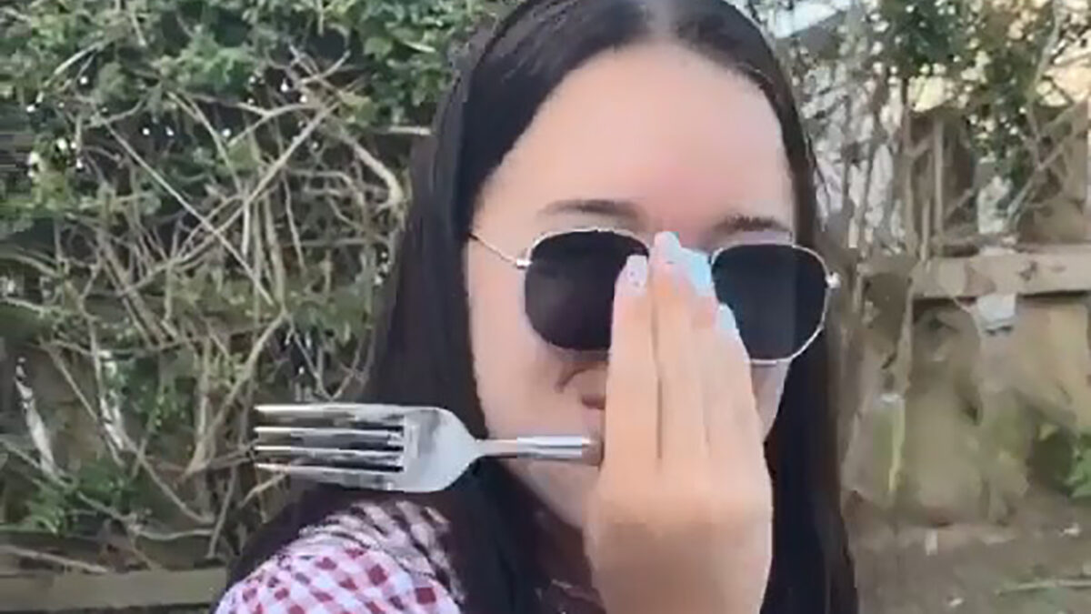 Ze probeert eerst nog om niet te lachen, maar als iedereen stukgaat valt ze alsnog door de mand.