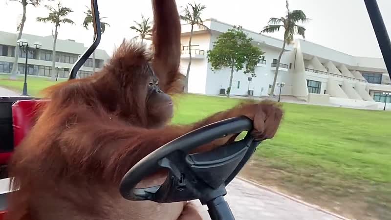 Sunday chill: orang-oetan cruiset een stukje in zijn golfkar