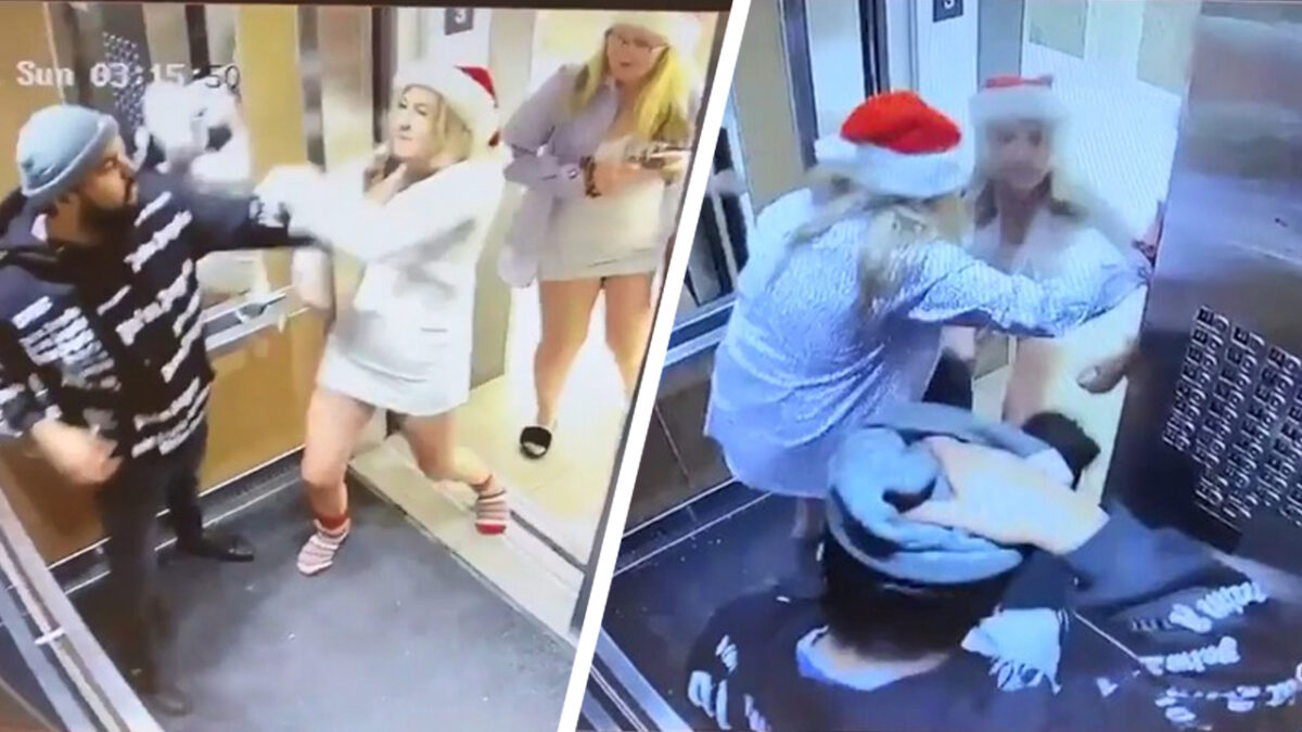 CCTV-beelden van drie bloedlinke vrouwen die een man aanvallen in Calgary