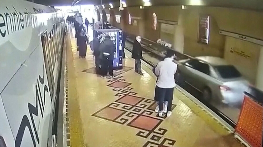 Turkse automobilist neemt verkeerde afslag en knalt zo tramstation in Istanbul binnen
