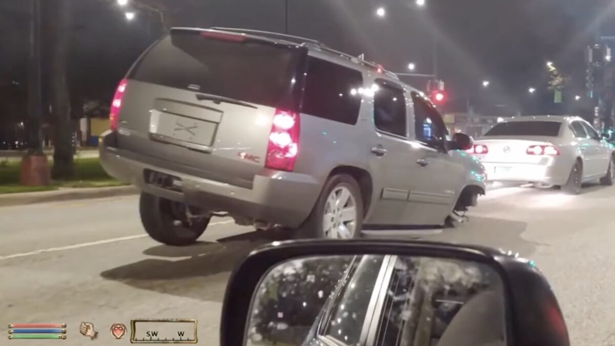 Bro, heb je in de gaten dat je een voorwiel mist? Verkeer
