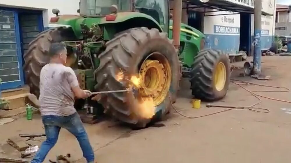 We hebben allemaal wel eens een video gezien dat je met een beetje gas en wat vuur zo'n band er binnen een paar seconden oplegt. Nou, deze gasten dus ook en dat wilden ze zelf ook wel eens in de praktijk ervaren.