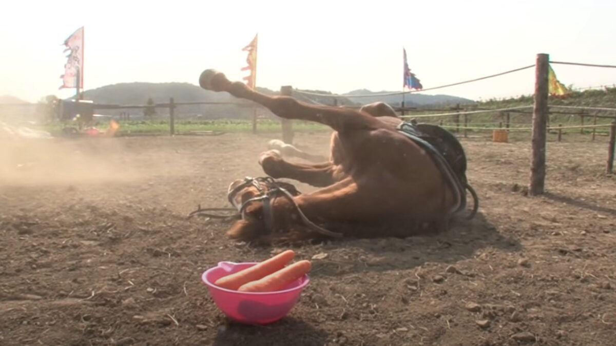 Uit de oude doos: paard speelt dood als iemand op hem probeert te rijden