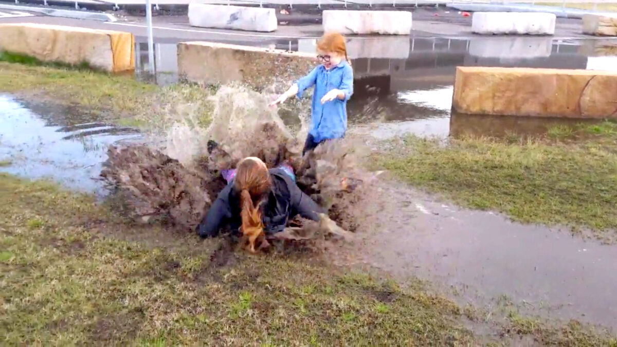 Wat is er nou leuker om als kind met je laarzen lekker in plassen te stampen? Wij weten het ook niet, maar deze moeder vond dat het allemaal wel wat enthousiaster kon en besloot het goede voorbeeld te geven. 🤦
