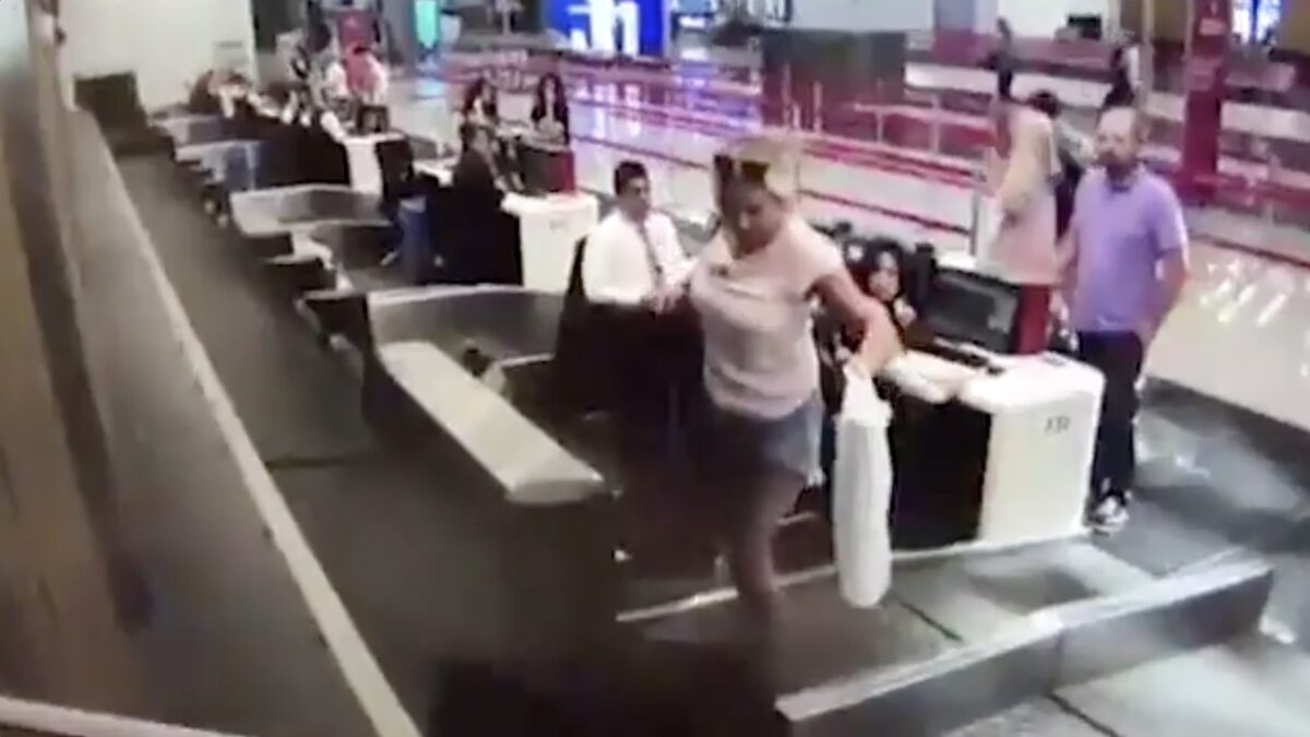 Deze vrouw moet nog even verteld worden hoe een bagageband werkt Fails