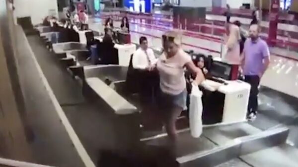 Deze vrouw moet nog even verteld worden hoe een bagageband werkt