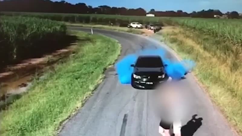Auto gaat in vlammen op door dikke burn-out tijdens gender reveal Fun