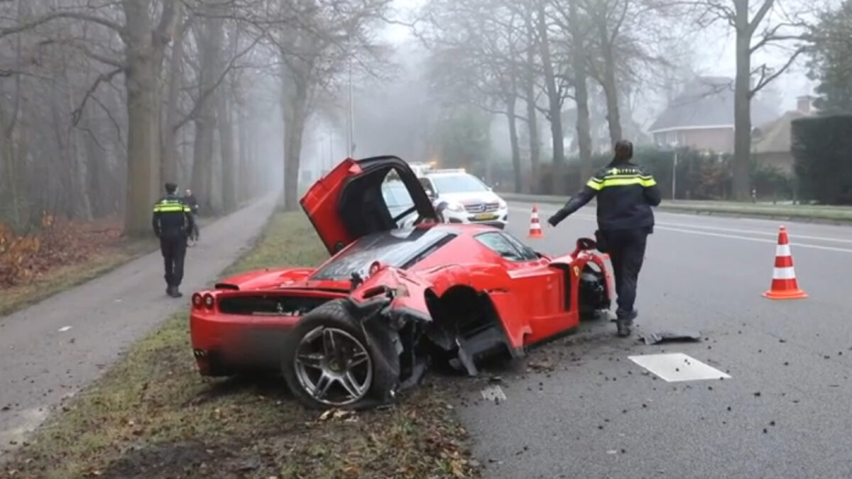 Toch fijn, dat je auto even goed wordt gechecked als je deze bij een garage brengt. Dat gebeurde ook bij deze peperdure Ferrari Enzo (3 miljoen, tsj-tsjingg), alleen gokken we dat de werkzaamheden niet helemaal goed waren afgerond. Dat, of de monteur gaf een een iets te grote dot gas. Hoe dan ook, hij parkeerde de unit tegen een boom in Baarn. Daar raakte 'ie zelf ook bij gewond, al is het momenteel onbekend of dat ernstig is.