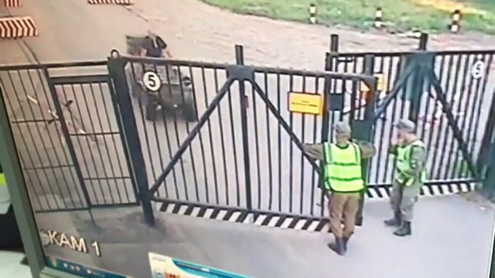 Quad-bestuurder remt ietwat aan de late kant voor Russische soldaat bij controlepoort