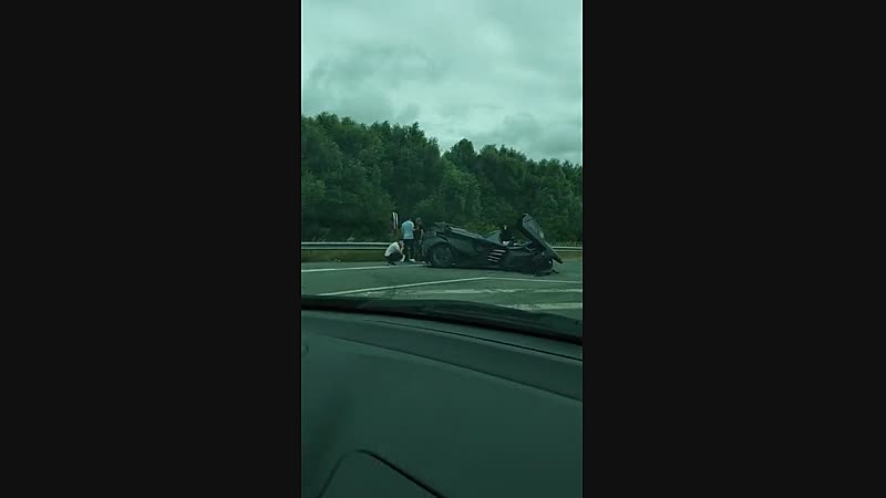 Batman rijdt op weg naar Nederland zijn Batmobiel in de poeier