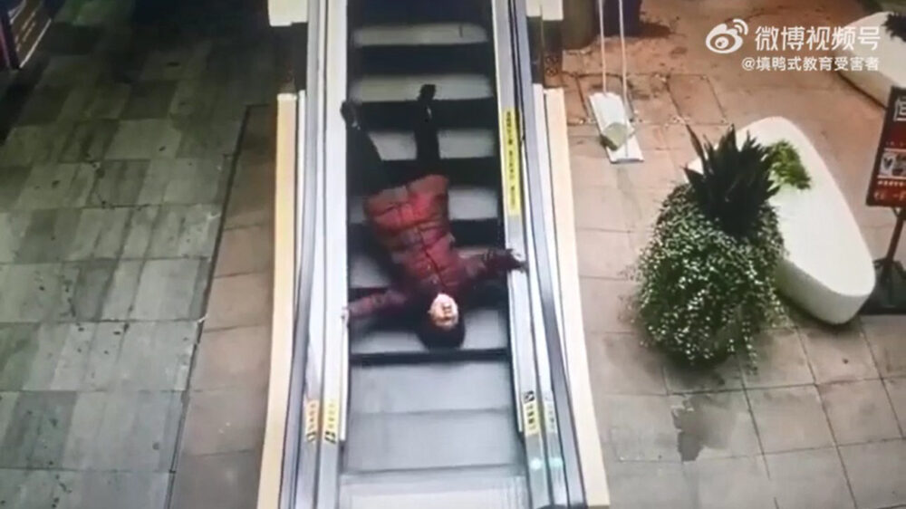 Chinese vrouw heeft onbedoeld een gigantische ruzie met een roltrap