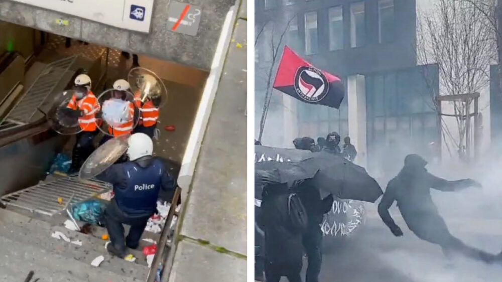 Na deze betoging, die voornamelijk vreedzaam verliep, braken er rellen uit in het nabijgelegen Jubelpark. Daar dook de politie bovenop met waterkanonnen, maar niet iedereen verliet het park. Sterker nog, een grote groep mensen belaagde de politie en bekogelden ze met vuurwerk, stenen, vuilnisbakken en zelfs dranghekken. Een grote groep van deze ME'ers trok zich terug in het metrostation. Niet zo gek, want op beelden is te zien dat een agent daadwerkelijk een dranghek op zijn hoofd krijgt.