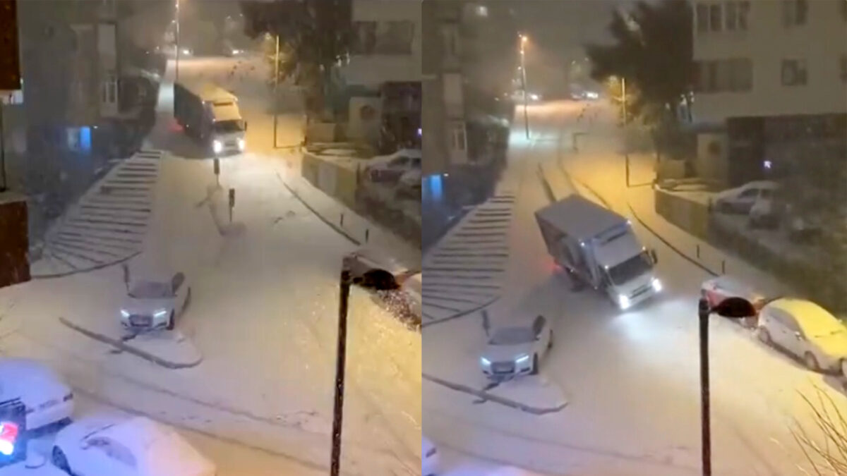 Audi-bestuurder heeft broekpoepmomentje als een vrachtwagen op hem af komt glijden