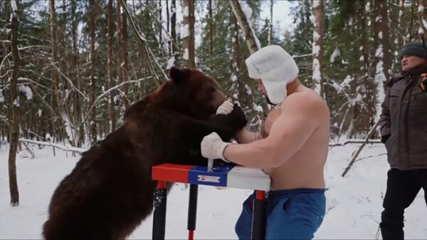 Ondertussen in Rusland: een potje armpje drukken met een beer