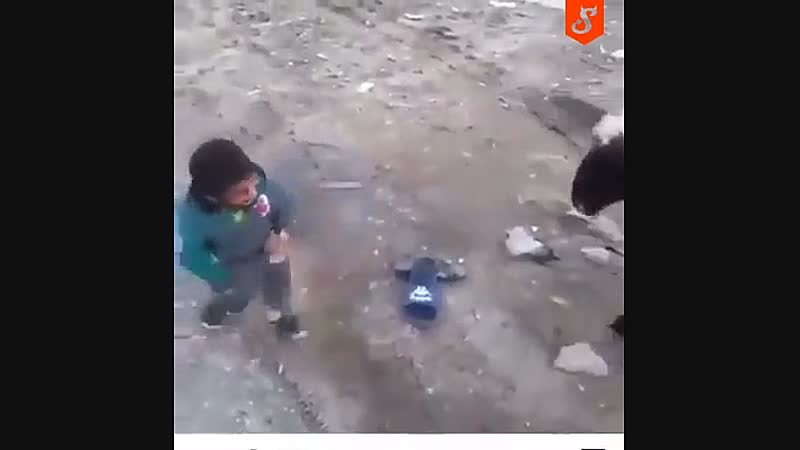 Mini-Bruce Lee legt het heerlijk af tegen een bokkige geit