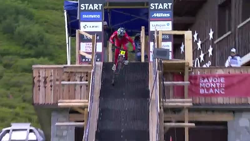 Amaury Pierron jaagt op belachelijke snelheid van een gestoord downhillparcours af