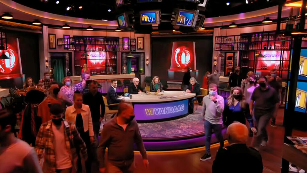 Is in het geval van een kroeg nog niet zo spannend (wel vervelend) want die schenken om 21:45 de laatste biertjes in en doen daarna de deur dicht, maar wat doe je bij een tv-programma dat om 21:30 begint en een uur duurt? Precies, alarmbellen af laten gaan, allemaal het mondkapje op, afstand houden en moven met zijn allen! Dat is namelijk precies wat er gebeurde bij VI Vandaag gisteren en dat leverde toch wel heel bijzondere beelden op.