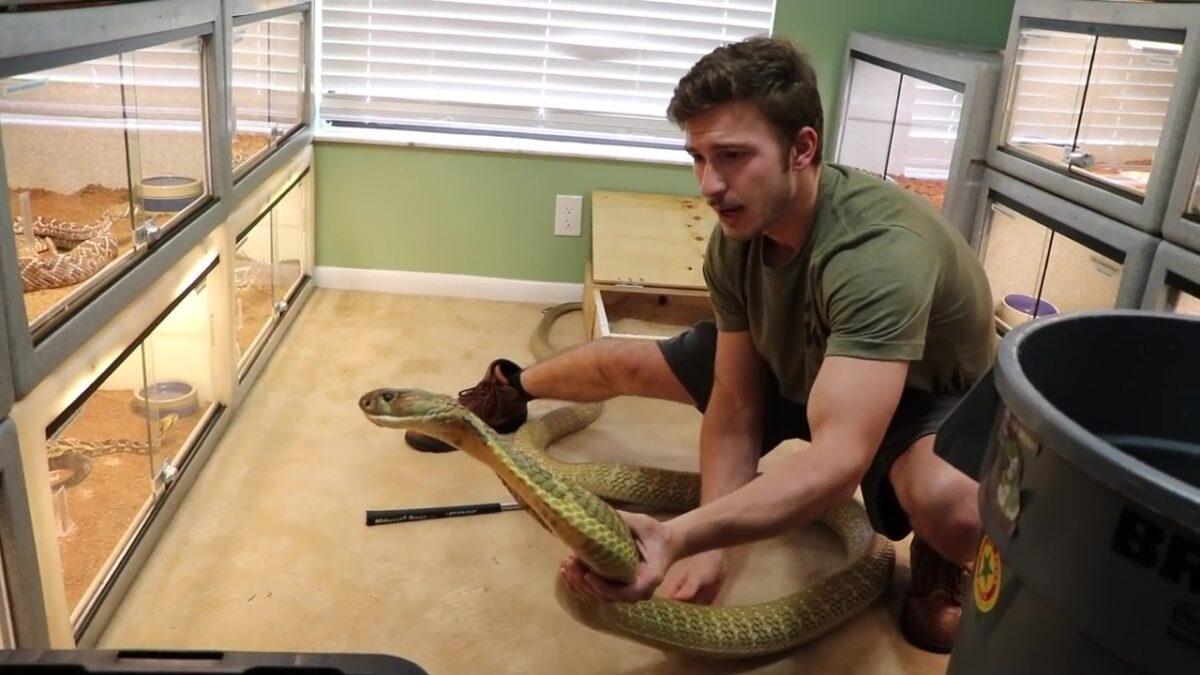 Nooit geweten, maar blijkbaar is het goed om je slang eens in de zoveel tijd in bad te doen om eens lekker te hydrateren. Zo leer je elke dag wat bij, maar in het geval van een koningscobra had ik deze lekker in zijn hokje laten zitten. Dan maar een droge slang. No pun intended.