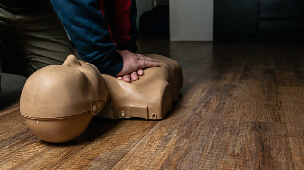 Gelukkig heeft hij ooit een YouTube-turorial gezien en aarzelt hij geen moment als hij de vrouw ziet liggen. 😂