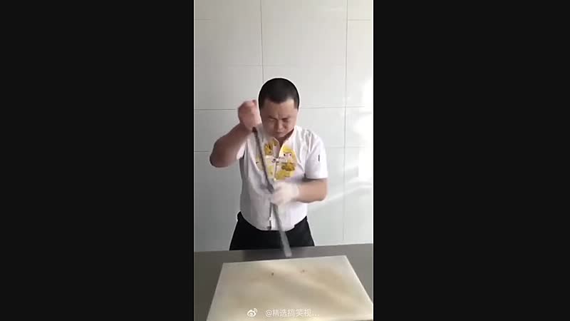 Samoerai-slager demonstreert zijn zieke skills Fun