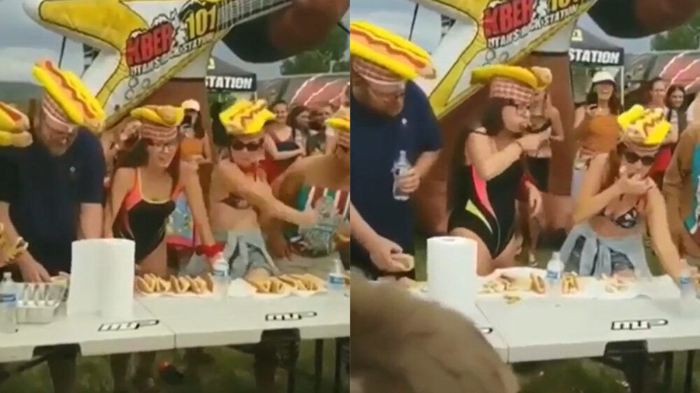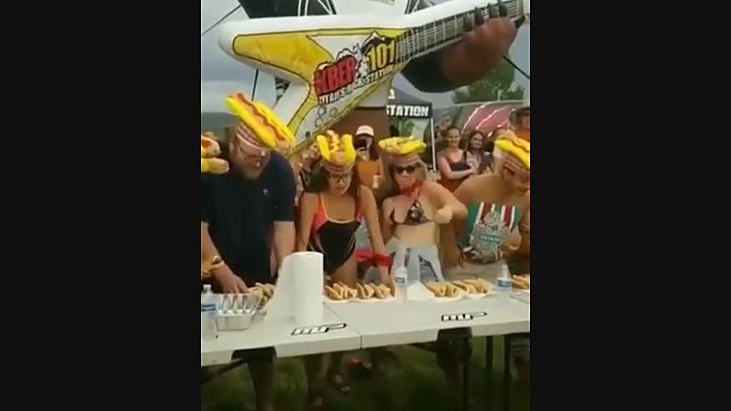 Hyperactieve ADHD-vrouw gaat he-le-maal los tijdens hot dog eetwedstrijd