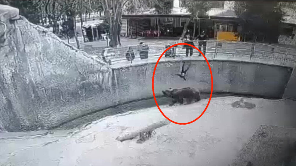 Volkomen geschifte beelden uit de stad Tasjkent (Oezbekistan), waar te zien is dat een vrouw haar 3-jarige dochter in het berenverblijf van een dierentuin gooit. Jup, dat lees je goed. De beer kwam nog even aan het meisje snuffelen maar liet haar verder met rust. Medewerkers wisten het beest daarna af te leiden en het meisje in veiligheid te brengen, de vrouw werd gearresteerd.