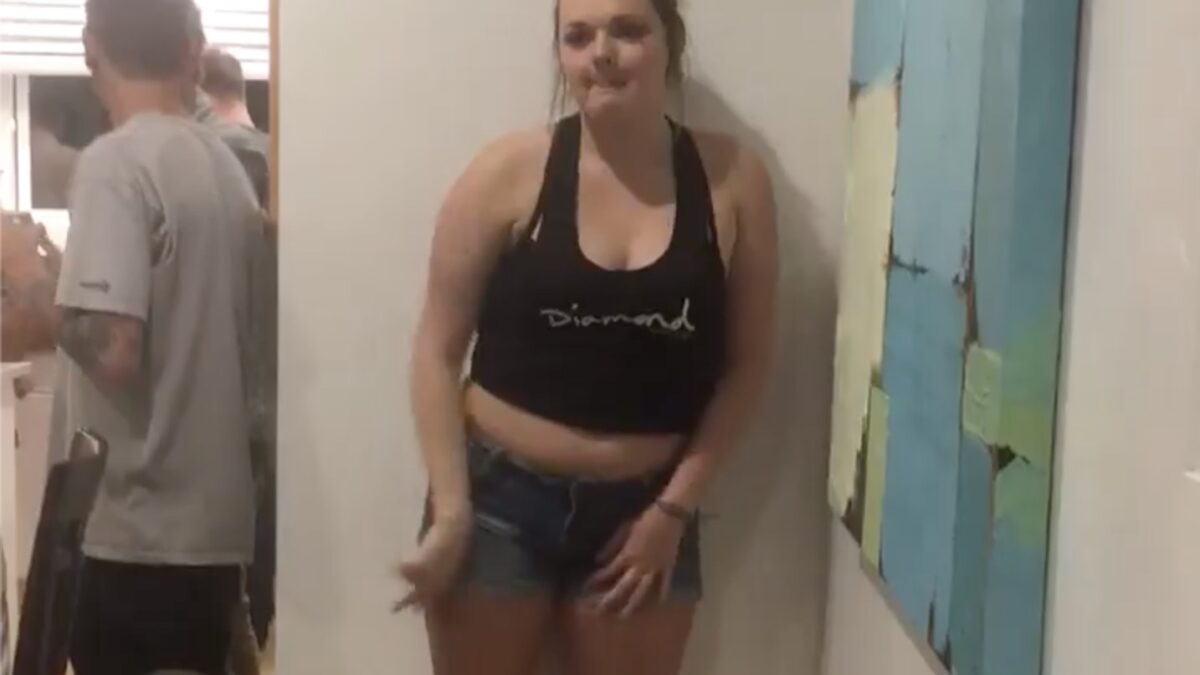 Bezopen dame probeert de zogenaamde muur-twerk Fails