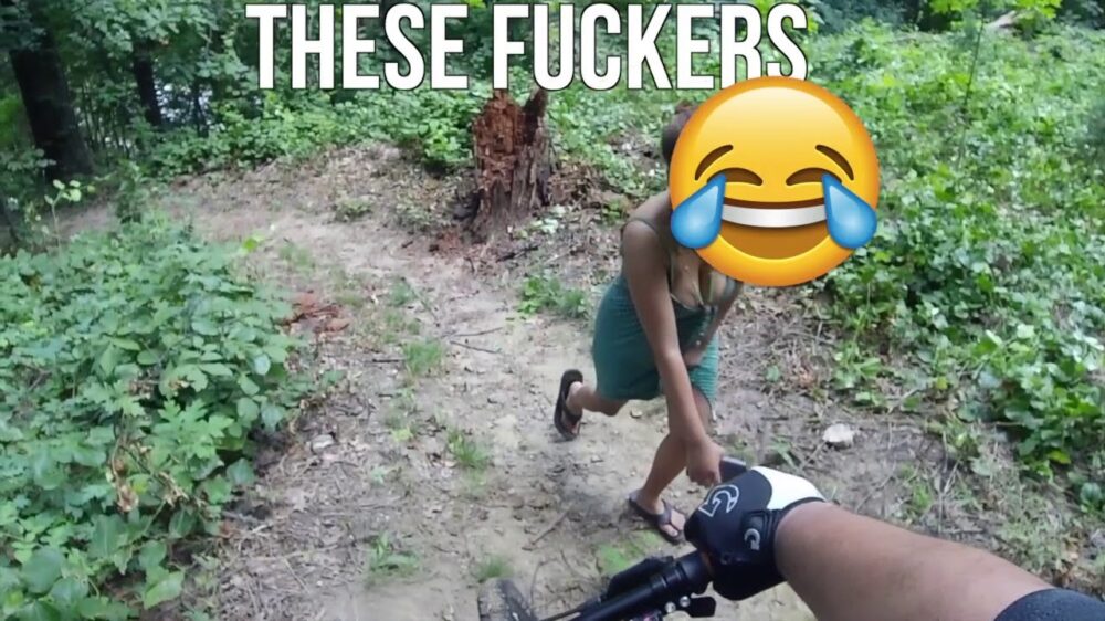 Mountainbiker verkent nieuw terrein en verstoort avonturiers tijdens hun 'survival' Fun
