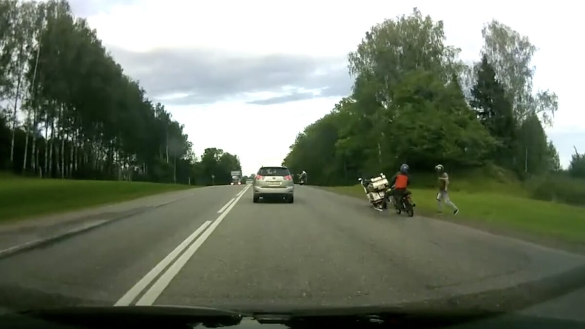 Stekeblinde scooterbink klapt vol op geparkeerde motormuis Verkeer