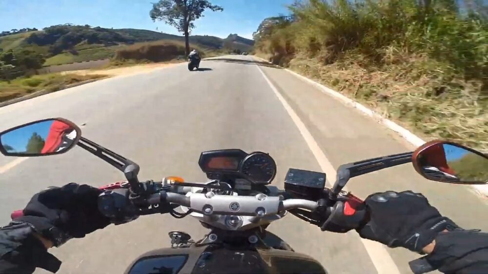 Motorrijder jankt met belachelijk hoge snelheid langs kerende auto