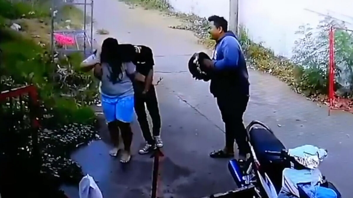 Aziatische vrouw neemt haar straalbezopen kerel op de rug Fun