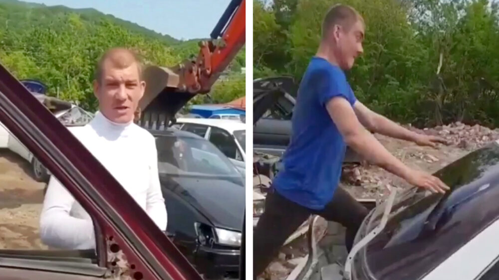 In Rusland hebben ze geen machines nodig om auto's te slopen want daar hebben ze Igor de Sloopkogel rondlopen.